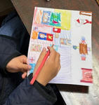 Hちゃんはサンタさんのジオラマ、プレゼントやツリーなど色々な素材でつくっています。