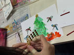 Sちゃんはサンタさんとクリスマスの絵を描きました。