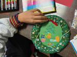 KNちゃんはインクアートでツリーをモールでミニリースを作りました。