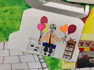 設地場所もバッチリ!Hちゃんは、ビー玉コマ、可愛くできました