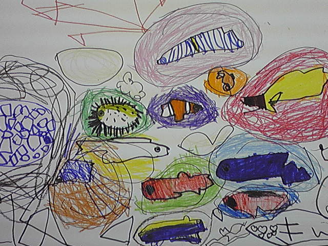 Kちゃんは、お魚をよく観察して描けています。幼稚園児さんとは思えぬできばえです。