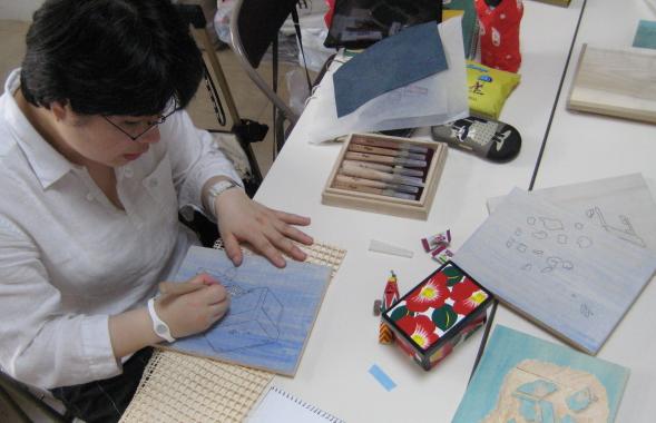 乾燥しているこの時期は 直ぐに絵の具が乾くので 刷りにくいのですが、