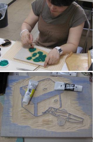 刷りは絵の具と、繋ぎの糊と水のバランスです