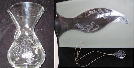 右: 花瓶とペンダントトップに模様小さくて細かい模様が見事に彫れました。