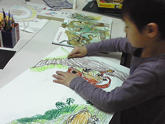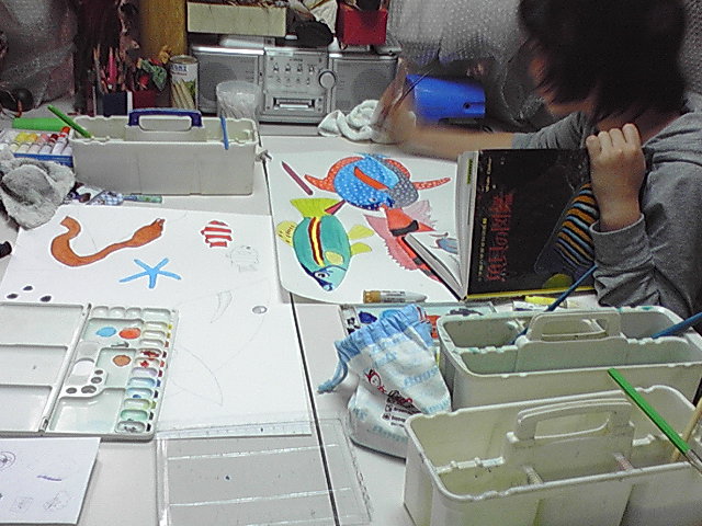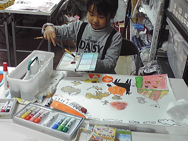 午後は、6年生組が元気一杯でそれぞれの作品を描いてました