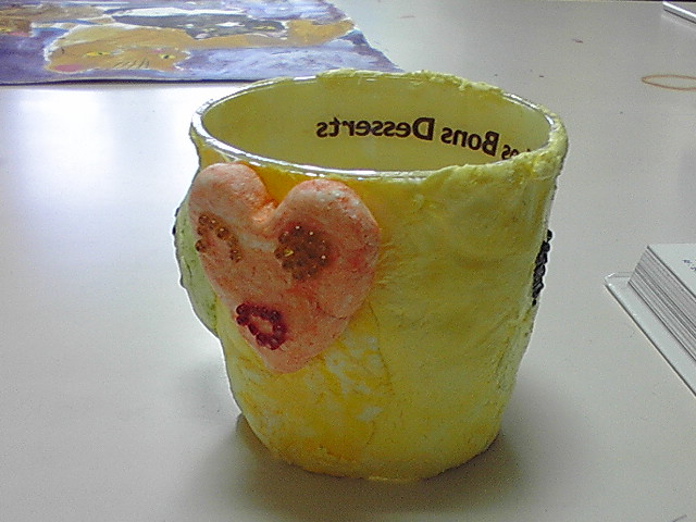 Mちゃんは紙粘土でペン立てを作りました。かわいくできました。