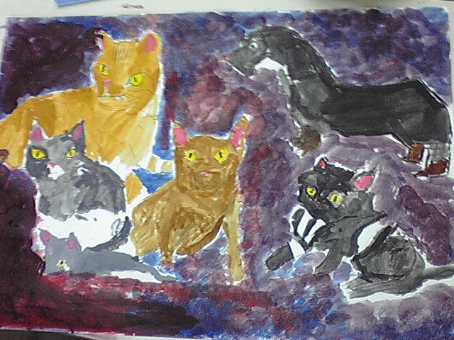 T君は、猫の鋭い目に合わして暗い色をバックにしてみました。