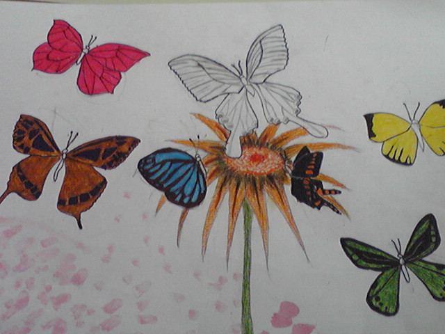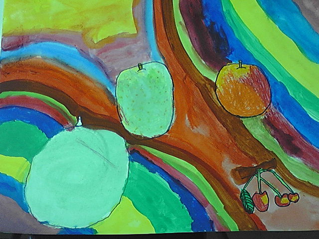 Kちゃんは色々な画材を取り混ぜて、色の幅を持たせた作品を制作中です