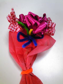 Sちゃんは花束とカードを作りました