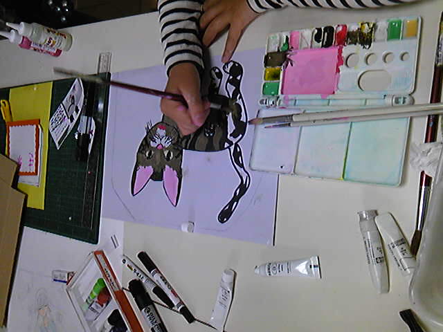 午前の部のNちゃんは飼ってる猫を描いてます