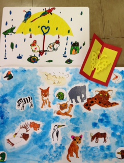 Kちゃん、可愛い動物達が一杯の、雨の日の作品完成です
