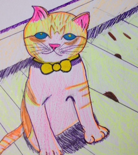 Nちゃんは、猫を蛍光ペンを使って描いてみました