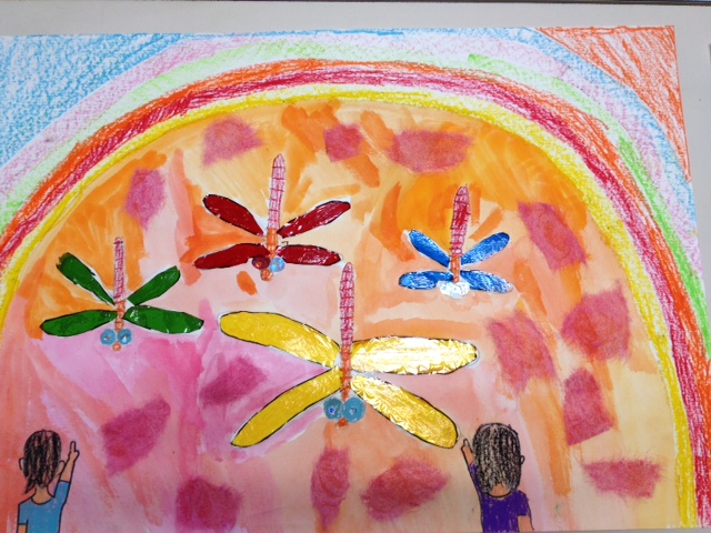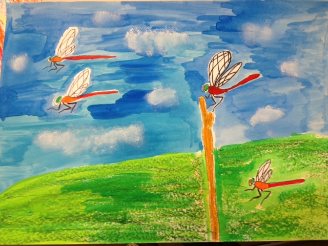 Aちゃん、Kちゃん、Rちゃん、Sくんはトンボのいる風景という題で絵を描きました、