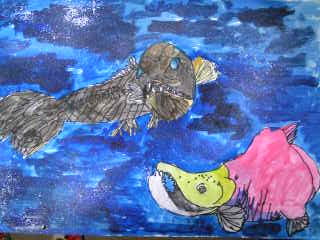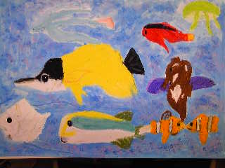 Nちゃんのお魚達、優しい色合いで上手に仕上がりました