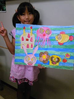貝殻をモチーフにした絵をきっちり完成させました、綺麗に仕上がりましたね!!