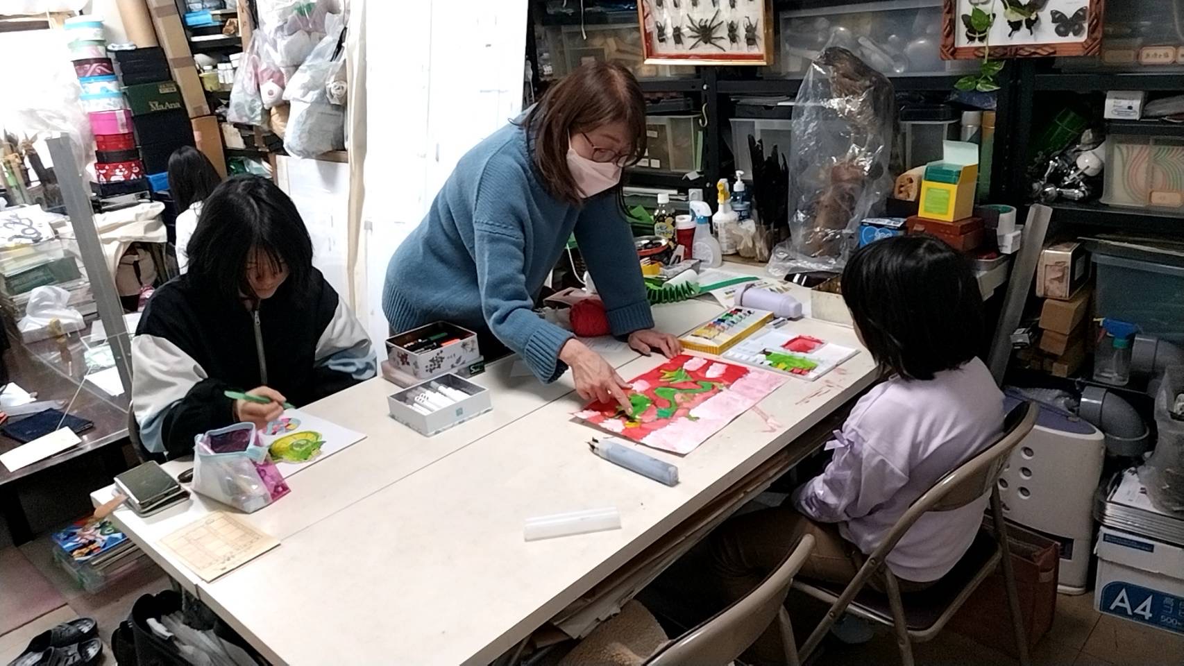 Tちゃんはアクリル絵の具で製作中