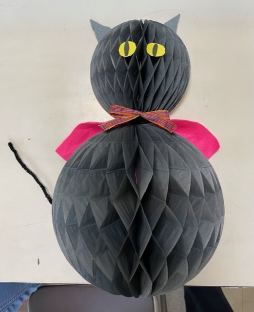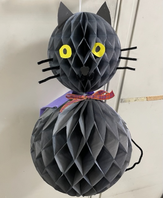 ネコやカボチャのお飾りを