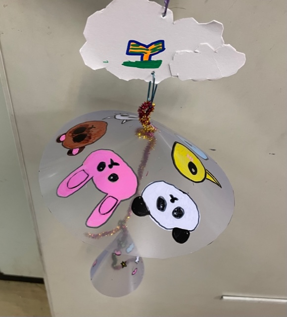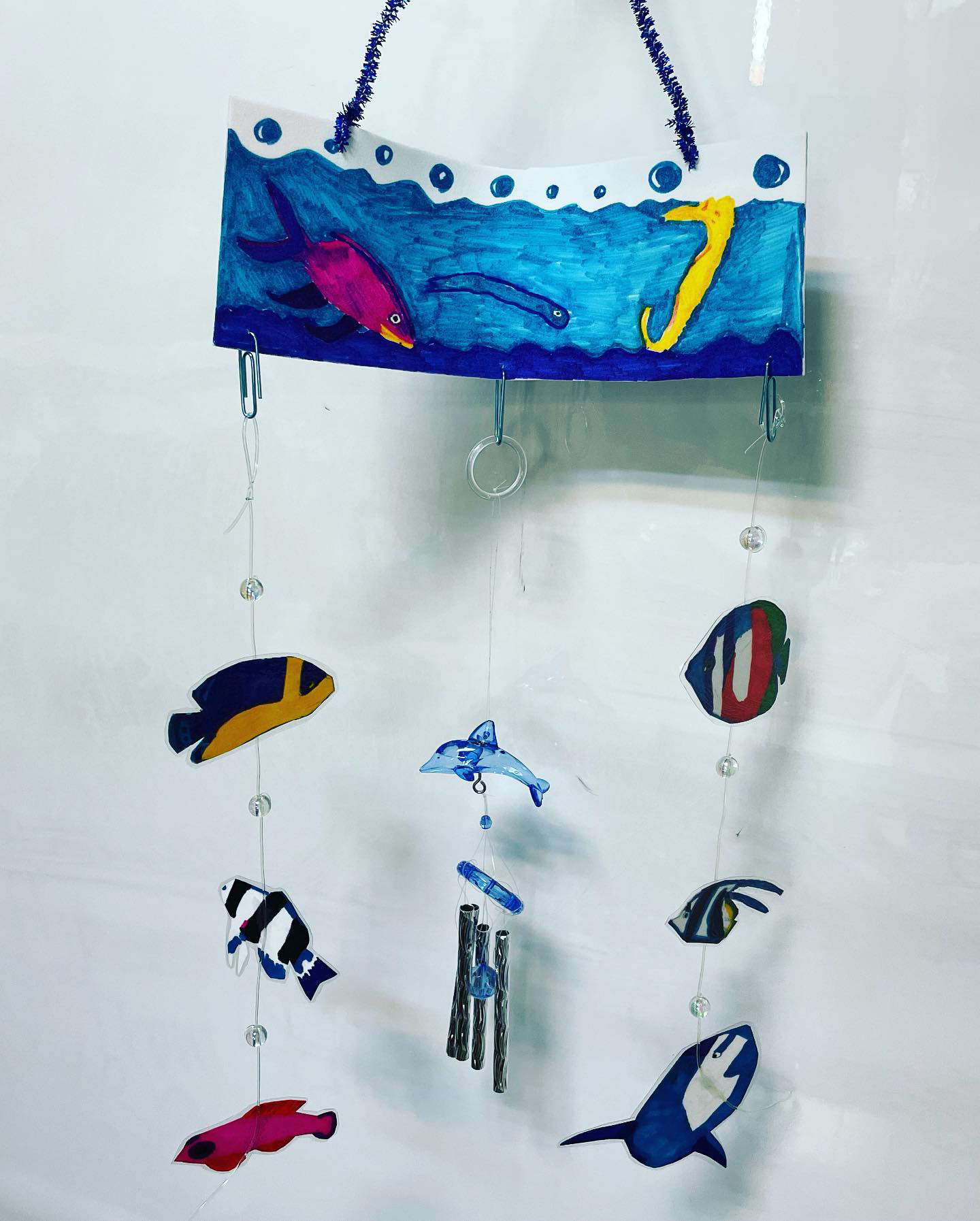 Rちゃんは魚いっぱいのふうりん、よく観察して完成しました。