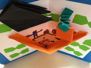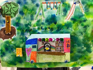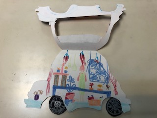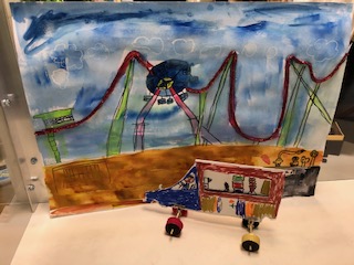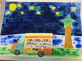 Kちゃん、Tくん、Hくんの作品は磁石で車が背景の中を動きます