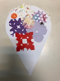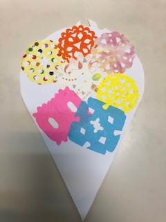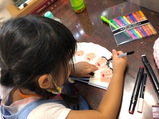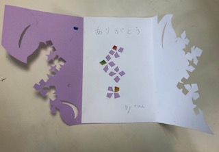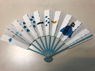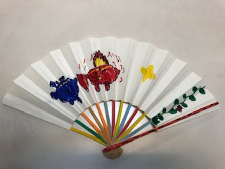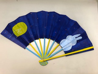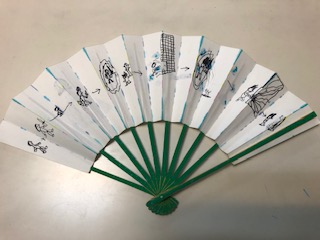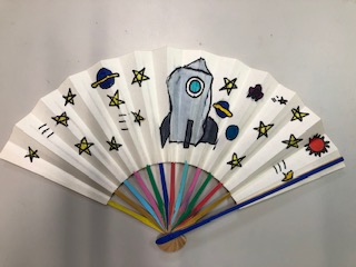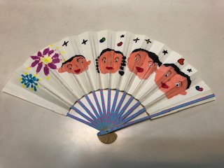 Hちゃんは、家族の笑顔扇子、上手にできました。