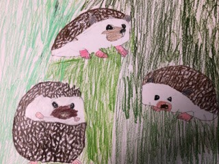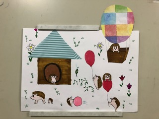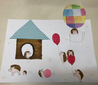 Nちゃんはふんわり浮かんだハリネズミたちを描きました。
