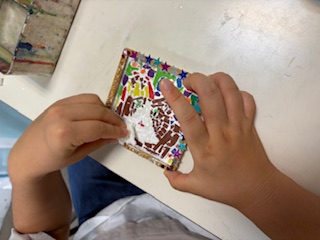 Hちゃんはコロコロローラーを使って作品作り