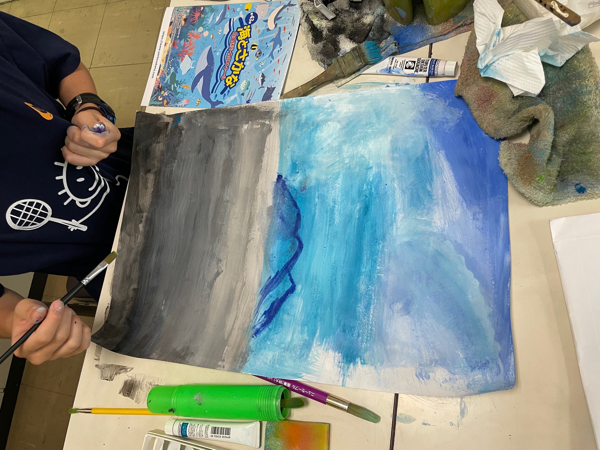 Eちゃんはアクリル絵の具で描きました