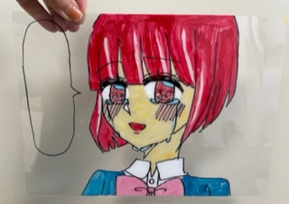Hちゃんはくるくる回るカードを作りました。表情が変わる面白いカードに完成しました。