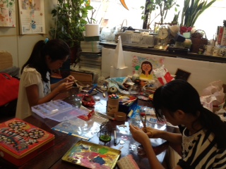夏の風物詩の風鈴作り、楽しんでまーす
