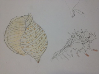 Aちゃんは、貝を描いてます