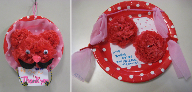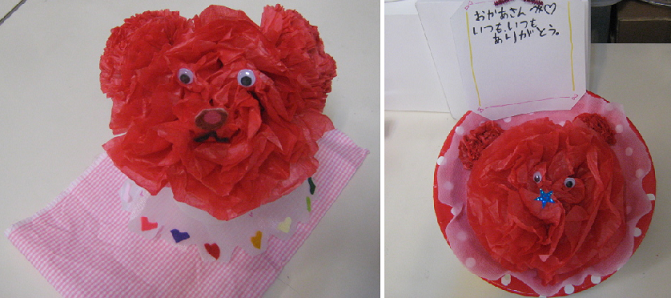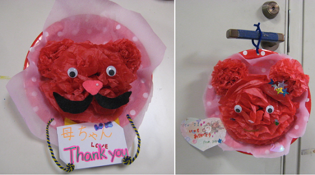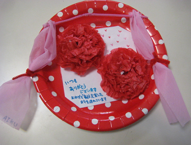 明日が母の日ということで、カーネーションをモチーフにプレゼントを作りました