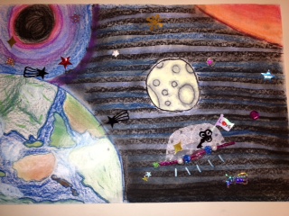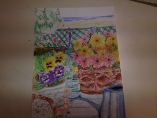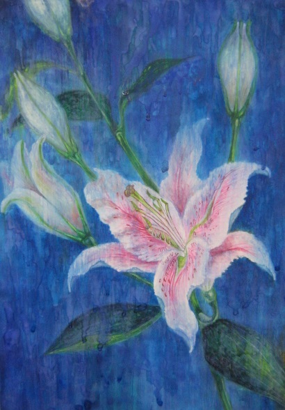 遠近法やぼかしも上手くいかして、きれいなな花の作品を描いてます