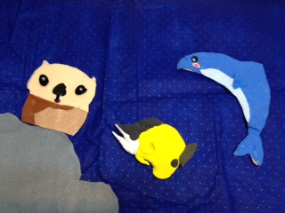 YちゃんのウーパールーパーやAちゃんのクラゲ、Rちゃんの黄色可愛いお魚、YURちゃんのタツノオトシゴ、Sちゃんのカニ、