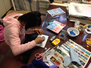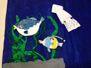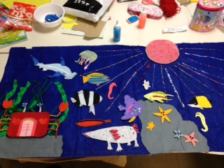 みんなで作っている、海の作品はたくさんのお魚さん達でいっぱいになってきましたよ