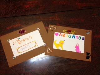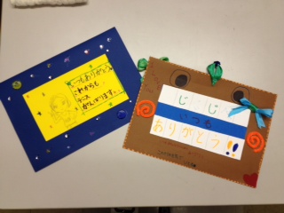 リバーシブルで、なおじいちゃん、おばあちゃん、両方にメッセージをかきました